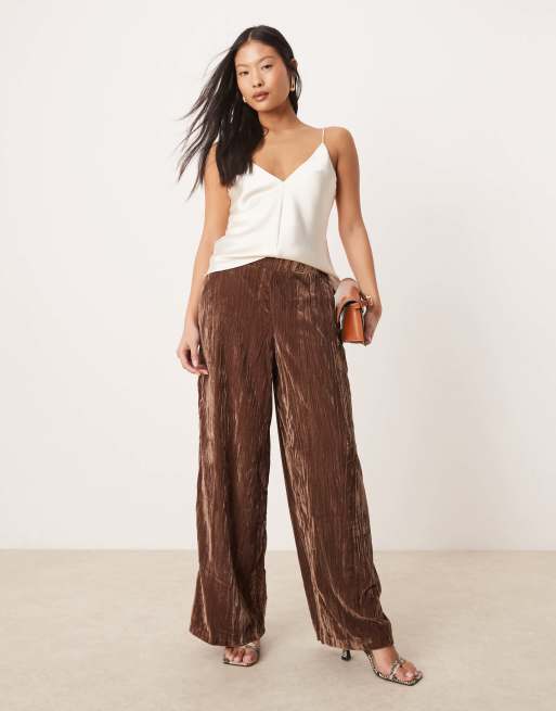 ASOS DESIGN Petite - Chokoladebrune pull-on bukser i krøllet velour