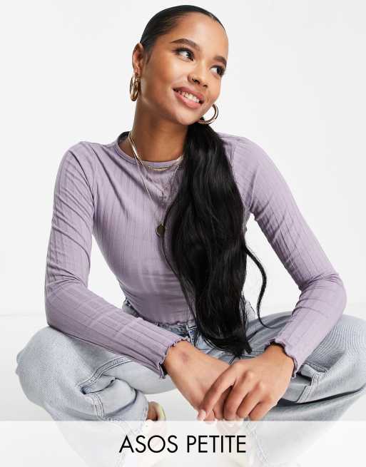 ASOS DESIGN Petite - Cropped T-shirt med bølgekant i lyslilla