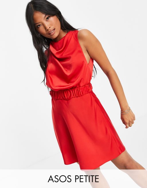 ASOS DESIGN Petite - Draperet minikjole i satin med høj hals og elastisk bæltedetalje
