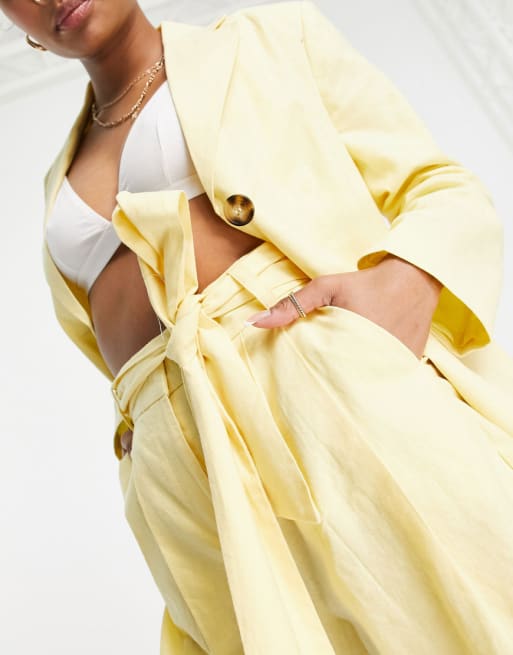 ASOS DESIGN Petite - Gult jakkesæt i hør med lige pasform