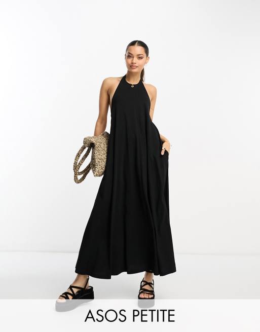 ASOS DESIGN Petite - Halterneck-maxikjole i sort