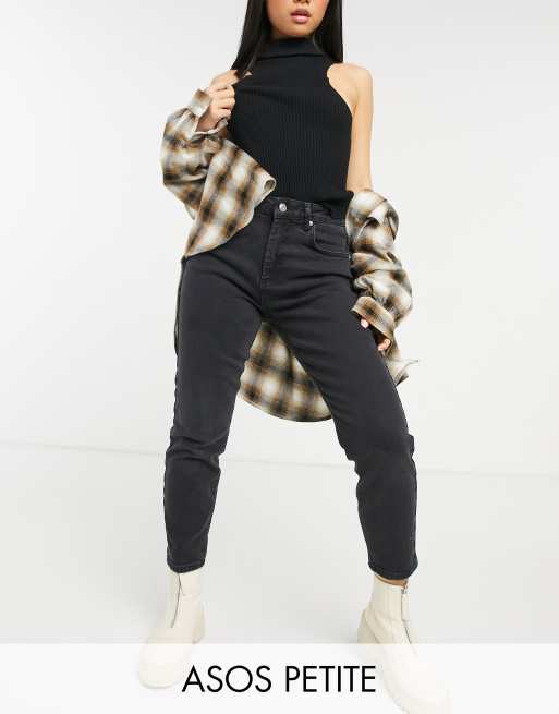 ASOS DESIGN Petite - Hourglass - Højtaljede smalle Farleigh-mom-jeans i forvasket sort