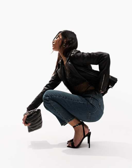 ASOS DESIGN Petite - Komfortable blå mom-jeans i slim fit