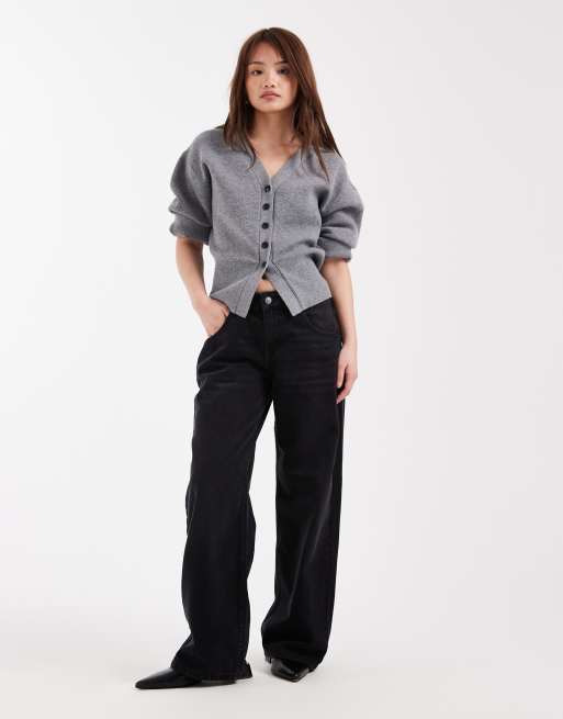 ASOS DESIGN Petite - Lavtaljede posede jeans i sort vask