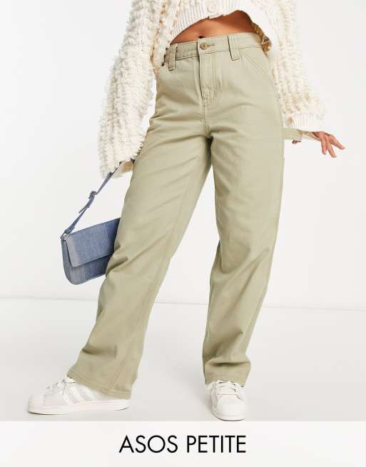 ASOS DESIGN Petite - Minimalistiske kakifarvede cargobukser med kontrastsyninger