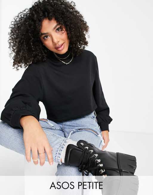 ASOS DESIGN Petite - Sort sweatshirt med høj hals og firkantet pasform