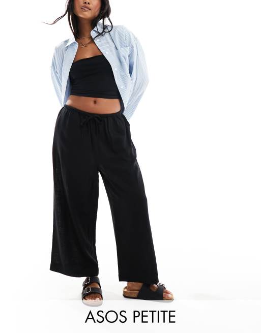 ASOS DESIGN Petite - Sorte pull-on culottebukser i hørblanding