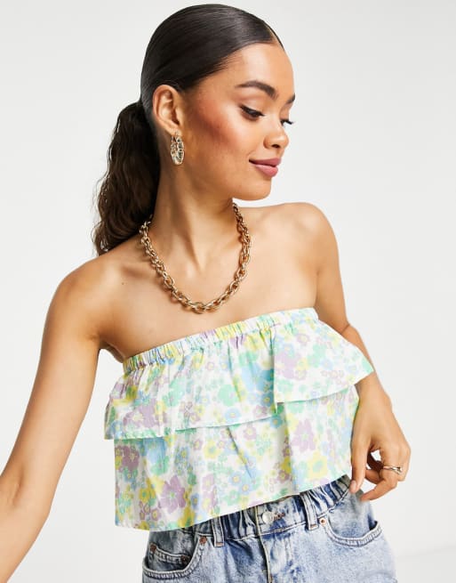 ASOS DESIGN Petite - Strandsæt med flæser og blomstermønster