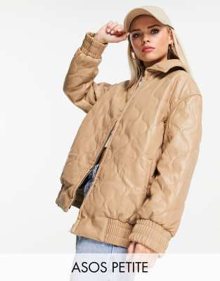 ASOS DESIGN Petite - Vatteret lysebrun bomber-jakke i imiteret læder