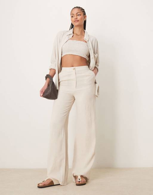 ASOS DESIGN Tall - Beige og afslappede bukser med lige ben i hørblanding