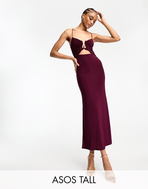 ASOS DESIGN Tall - Blommefarvet cami-midikjole med guldfarvet detalje og udskæring