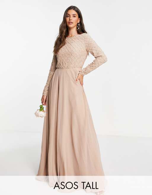 ASOS DESIGN Tall - Brudepiger - Langærmet maxikjole med perleudsmykning og tylskørt