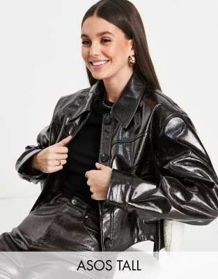 ASOS DESIGN Tall - Brun chuck on-jakke i krakeleret imiteret læder