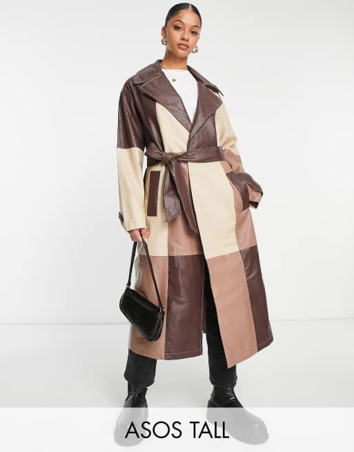 ASOS DESIGN Tall - Brun trenchcoat med lapper i imiteret læder