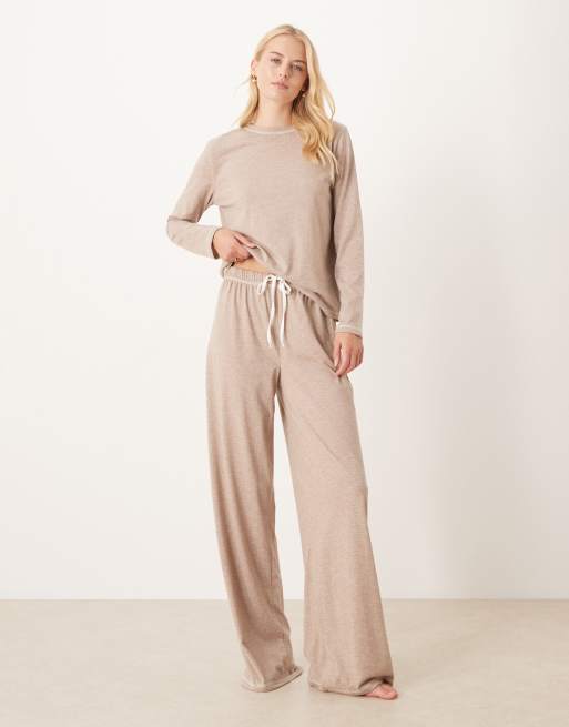ASOS DESIGN Tall - Brunmeleret pyjamassæt med langærmet top og bukser med vide ben