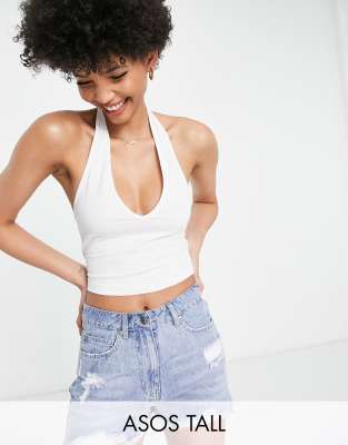 ASOS DESIGN Tall - Croptop med halterneck i hvid