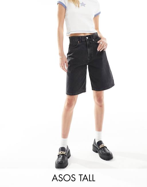ASOS DESIGN Tall - Forvaskede sorte bermudashorts i denim