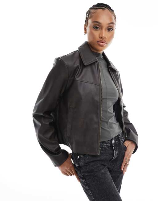 ASOS DESIGN Tall - Forvasket brun jakke med læderlook og krave