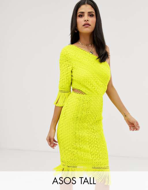 ASOS DESIGN Tall midikjole med en skulder i blondeudskæring med flæsekant