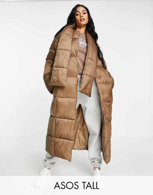 ASOS DESIGN Tall - Oversized kamelbrun dynejakke med tørklæde