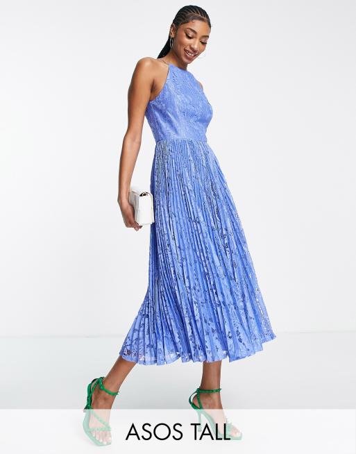 ASOS DESIGN Tall - Pinafore midi-gallakjole med plisserede blonder i blå