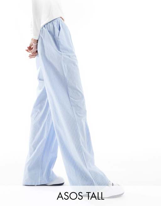 ASOS DESIGN Tall - Pull-on-bukser med taljebånd med knap og blå striber