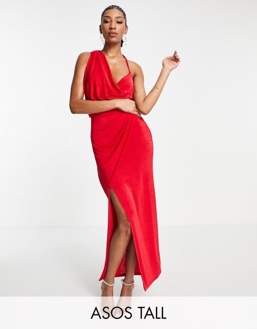 ASOS DESIGN Tall - Rød slå-om-midikjole med cami-stropper og draperet skulder