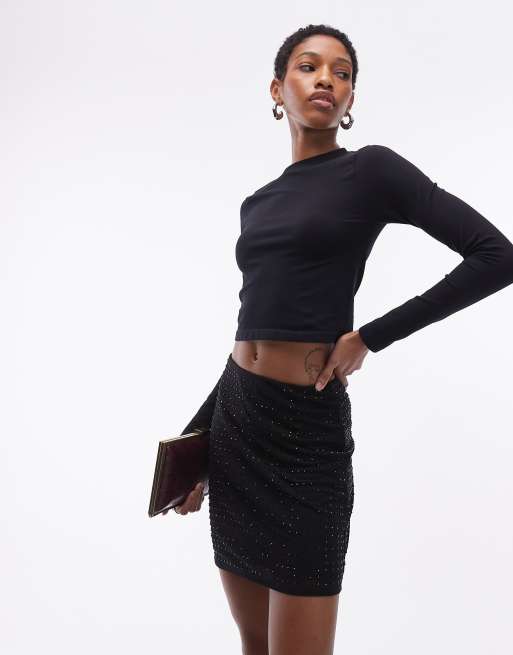 ASOS DESIGN Tall - Sort mininederdel med hotfix-mønster