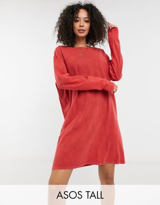 ASOS DESIGN Tall - Varm orange oversized T-shirtkjole i syrevask med lange ærmer