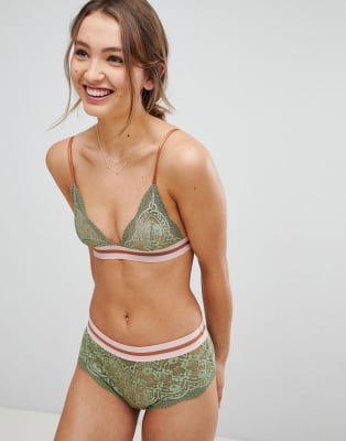 ASOS Izzy Trekant-BH med kontasterende elastisk blondedetalje og franske trusser - Sæt
