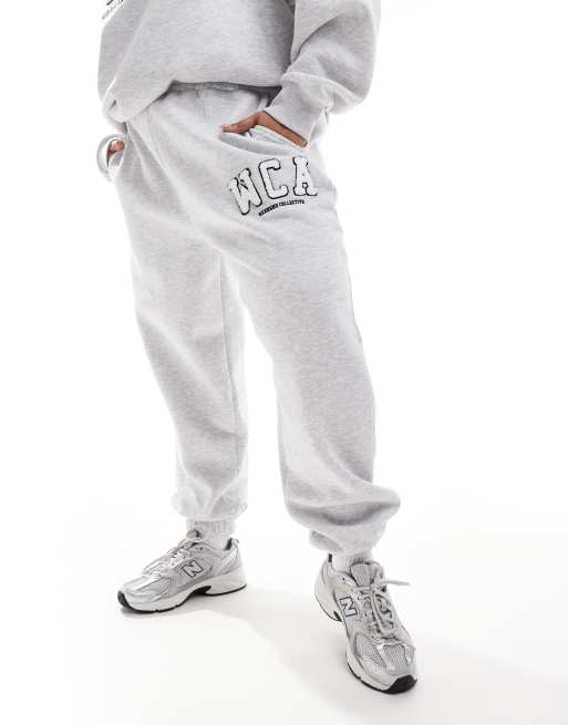 ASOS - Weekend Collective Curve - Gråmeleret joggingbukser med collegelogo