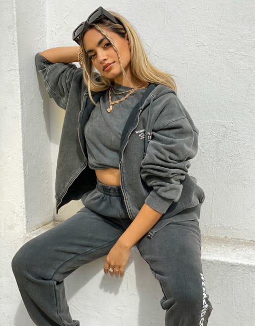 ASOS - Weekend Collective - Oversized sæt med minilogo i koksgrå vask