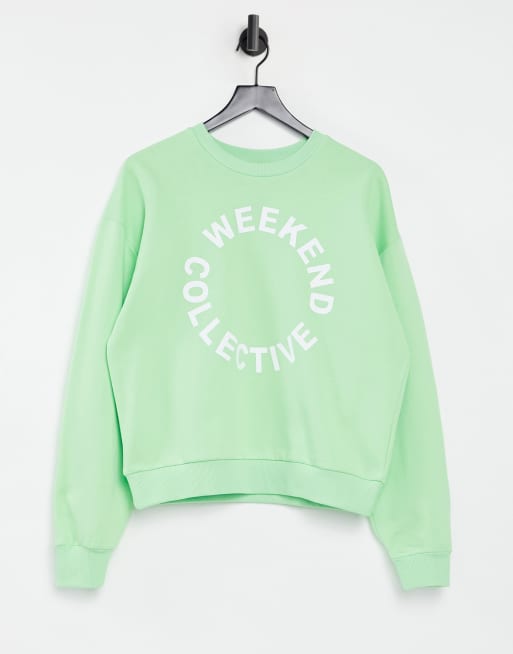 ASOS Weekend Collective - Oversized sweatshirt i lysegrøn med logo - Del af sæt