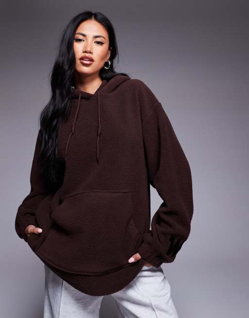 Weekend Collective - Chokoladebrun hættetrøje med 'WCA'-grafikdetalje på ærmet i kraftigt imiteret lammeskind