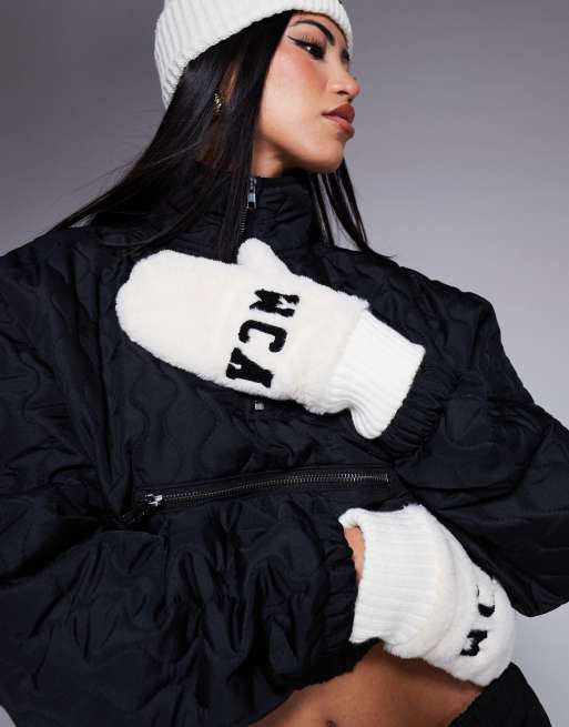 Weekend Collective - Cremehvide vanter i imiteret pels