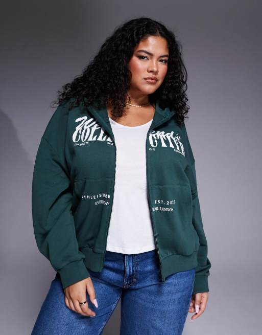 Weekend Collective Curve - Grøn hættetrøje med lynlås og grafik med forskellige fonter