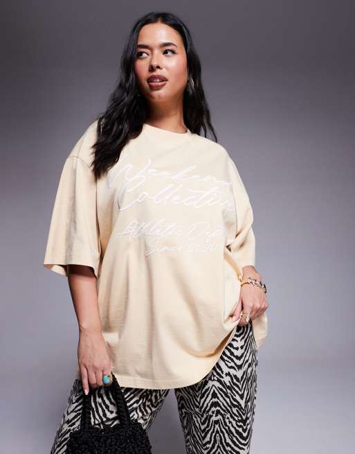 Weekend Collective Curve - Lysegul oversized T-shirt med skriftlogo