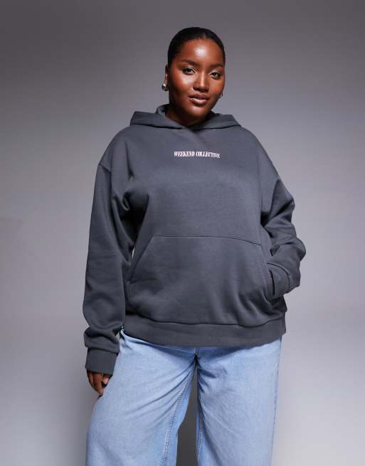 Weekend Collective Curve - Oversized koksgrå hættetrøje med logo på ryggen