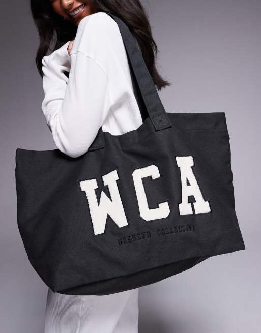 Weekend Collective - Vasket koksgrå tote-taske med college-grafik