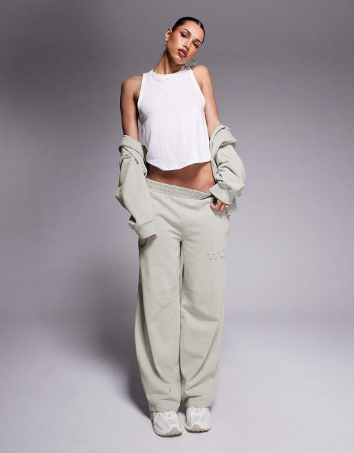 Weekend Collective - Vasket salviegrønne kraftige joggingbukser med tøndeformede ben - Del af sæt