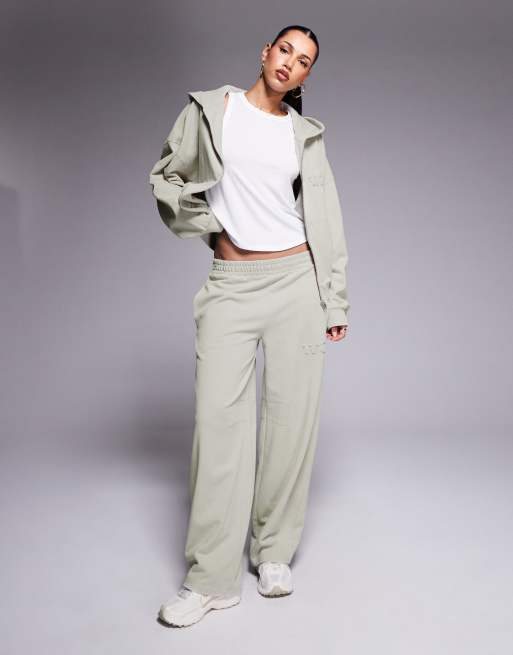 Weekend Collective - Vasket salviegrønt sæt med hættetrøje og joggingbukser med tøndeformede ben i kraftigt materiale
