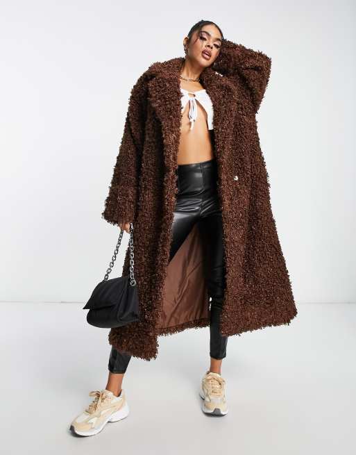 ASYOU - Chokoladebrun longline-frakke i imiteret pels