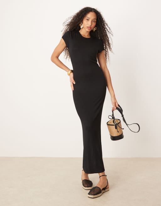AWARE - Blød og sort maxikjole i jersey