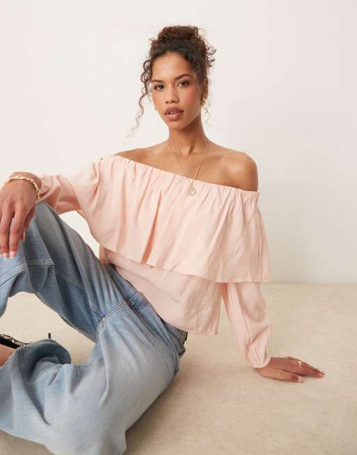AWARE - Lyserød statement-top med offshoulder-snit