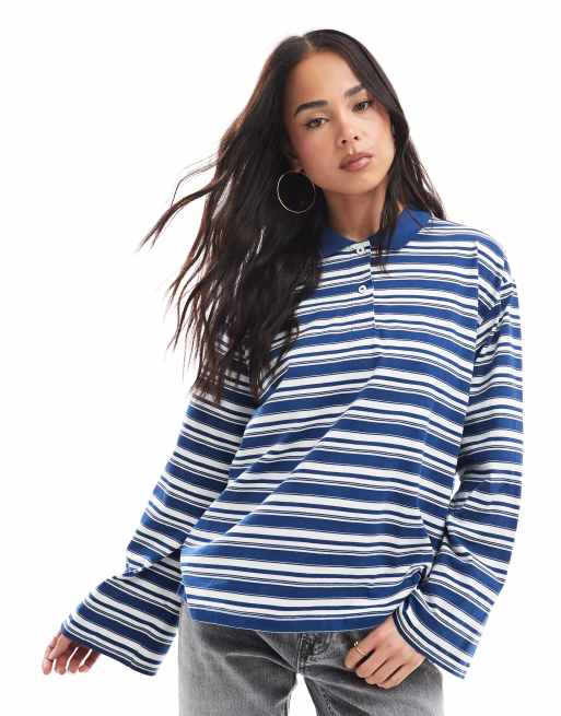 AWARE - Marineblå og hvid polotop med lange ærmer og striber