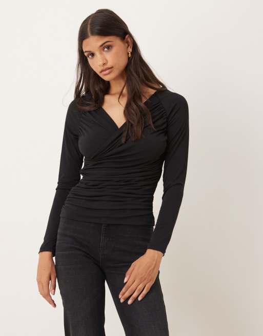 AWARE - Sort og stram top med slå om-design foran og draperingsdetaljer