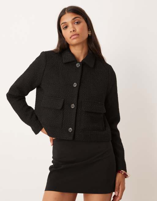 AWARE - Sort trofæjakke med knapper foran i boucle