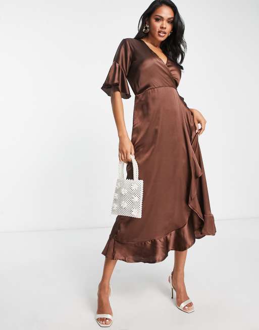 AX Paris - Brun slå-om-kjole i satin