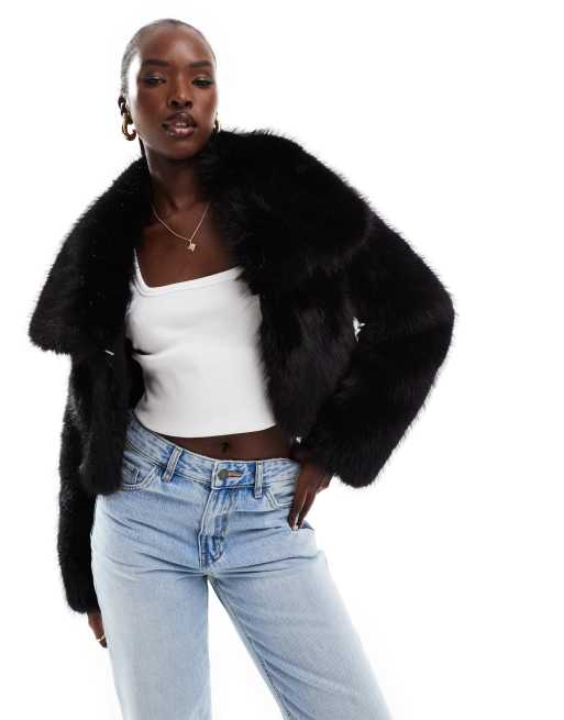 Azalea Wang - Cadence - Cropped frakke i sort, imiteret pels