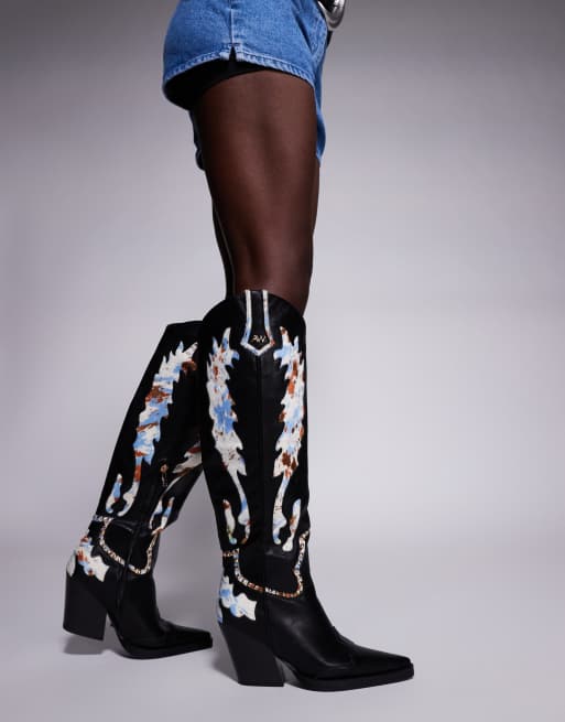 Azalea Wang - Dumas - Sorte western-knæstøvler med koprint